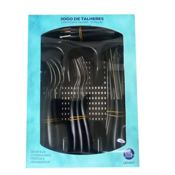 Jogo de Talheres com Porta Talher 26pç Preto Lehavi