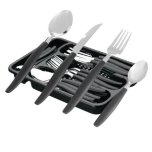 HomeLojaFaqueiroFaqueiro 24 peçasJogo de Talheres com Porta Talher 26pç Preto Lehavi
