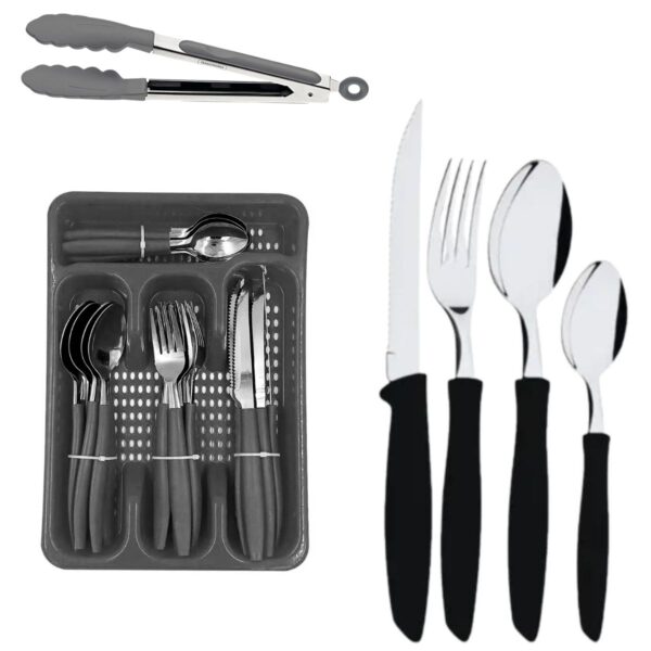 • ESGOTADO Loja Casa Canto - Faqueiro 24 peças - Faqueiro Madras Marfin Preto aço Inox 24pç WolffSold