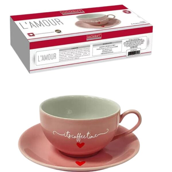 Charme ao servir, as xícaras L’Amour proporcionam uma mesa mais romântica sem perder a elegância.Porcelana da Indonésia vem trazer beleza e requinte à sua mesa de cafe da manhã.Como a capacidade é de 160ml podemos sugerir estas xicaras para um chá ou mesmo um capuccino.