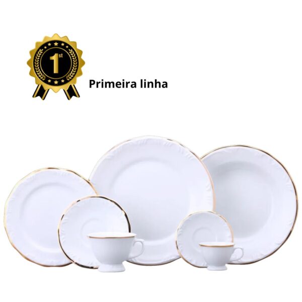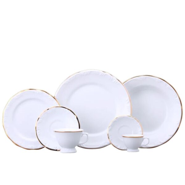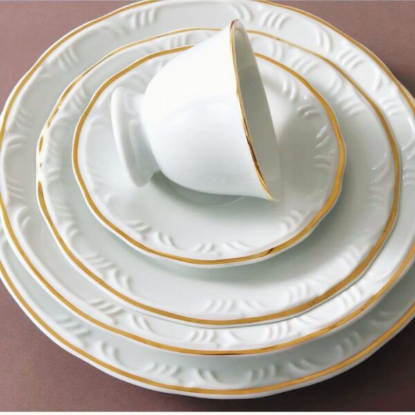 Jogo Jantar e Chá 42pç Filete Ouro Pomerode Luxo Porcelana Schmidt