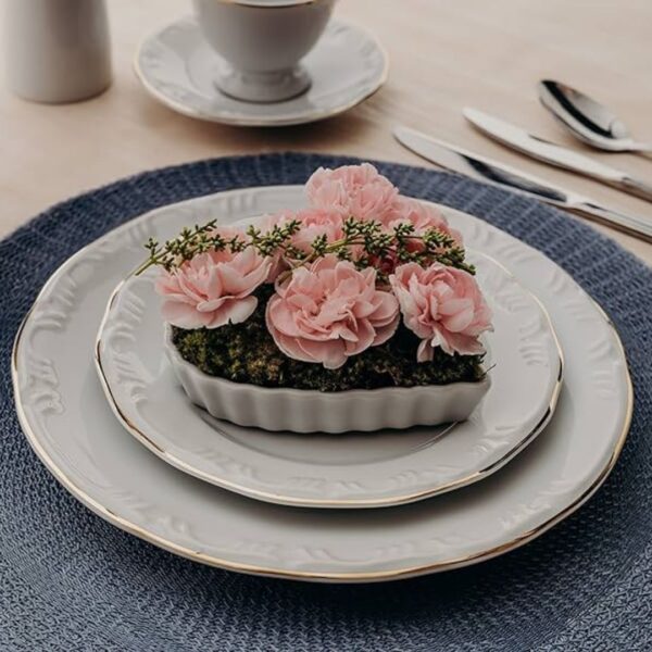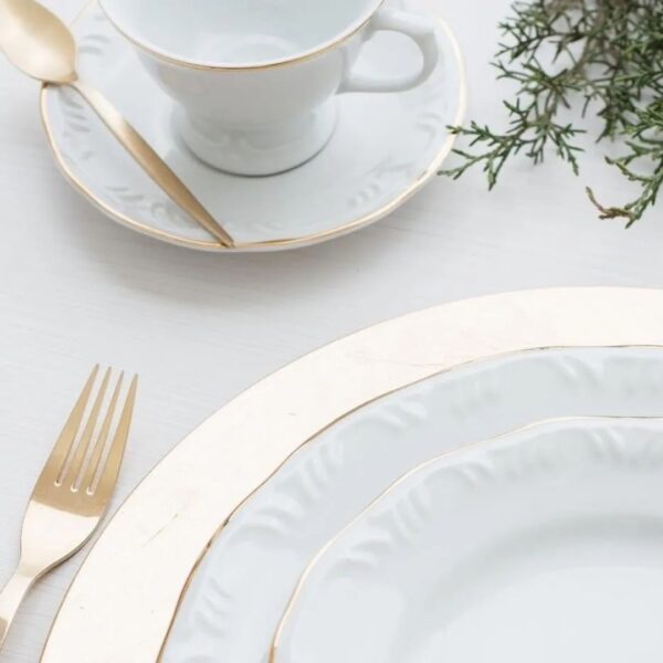 As louças brancas são ideais para destacar a cor dos alimentos. A linha Pomerode combina classe e leveza para uma cozinha clássica ou uma decoração mais colorida. O detalhe do filete dourado, aplicado manualmente, adiciona um toque de luxo à mesa.
