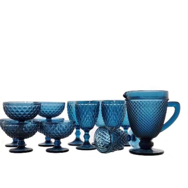 Jogo Jarra e Taças Água e Sobremesa Bico Abacaxi 13pç Azul