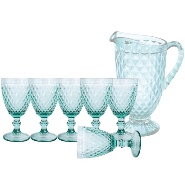Composição: 01 Jarra com capacidade para 1,2 litros e 06 Taças com 320ml cada.