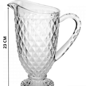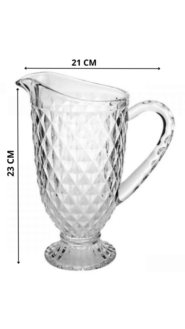 Jogo de Taça e Jarra Bico de Abacaxi Transparente sendo a Jarra com capacidade para 1 litro e as 6 un de Taças com capacidade para 260 ml.