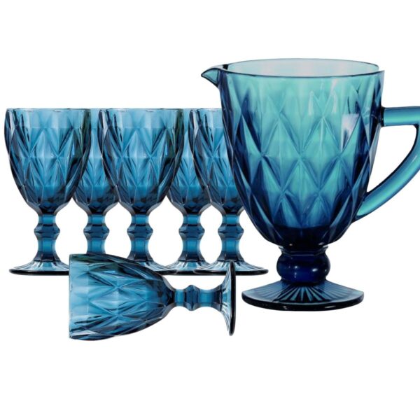 Jogo de Jarra 1lt e 6 Taças 260ml cada Diamond Azuis