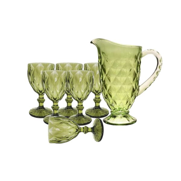 Jogo Jarra e Taças Diamond 7pç Verdes