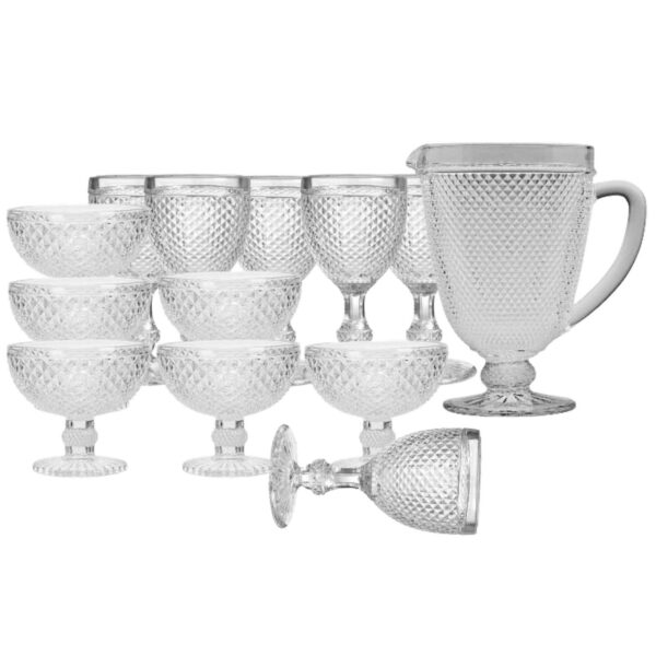 Jogo Jarra e Taças p/ Agua e Sobremesa Bico de Jaca Transparente 13pcs Bom Gourmet