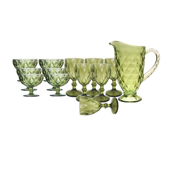 Jogo de Jarra e Taças para Água e Sobremesa Diamond Verdes