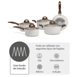 Jogo Panelas Revestimento Cerâmico Indução Mármol 5pç Mimo Style