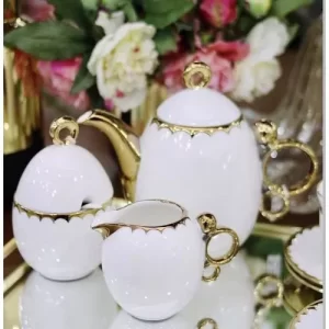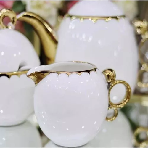Jogo para chá Bule,Leiteira e Açucareiro 3pç Egg Porcelana Dourada Wolff
