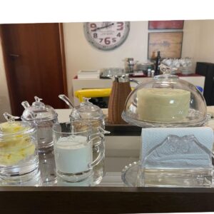 Contém: 3peças sendo: 1un Açucareiro 150ml, 1un Manteigueira 150ml, 1un Leiteira 250ml.