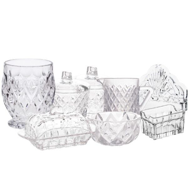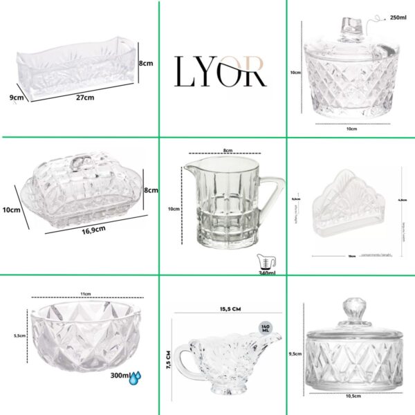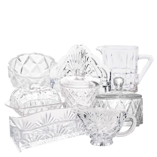 Além da alta qualidade, o jogo para chá Cristal Deli Diamond da Lyor oferece um excelente custo-benefício. Composto por 8 peças essenciais para um serviço completo de chá, incluindo porta talher, mantegueira, bowl, molheira, açucareiro, potiche, porta guardanapo e jarra ou cremeira, este conjunto proporciona tudo o que você precisa para uma experiência completa de chá ou café.
