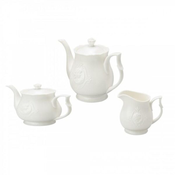 Jogo para Chá e Cafe 3 peças Porcelana Super White Queen Lyor sendo dois Bules e Uma Leiteira