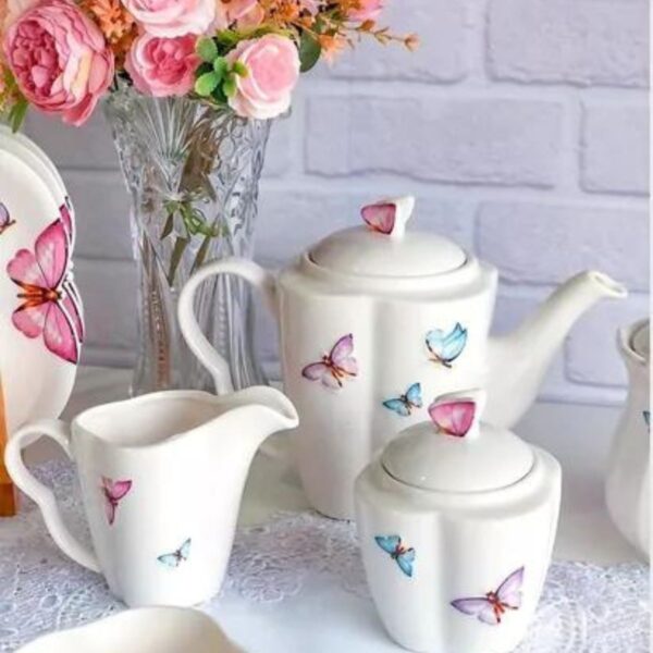 Jogo para Chá e Xícaras Borboletas 15pç Porcelana Wolff