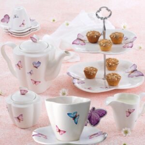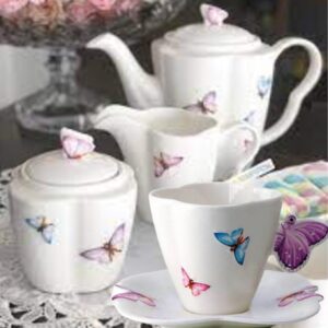 Jogo para Lanche Borboletas Porcelana Branca 16pç Wolff Sirva em grande estilo este Jogo para Chá contendo 01un Bule, 01un Açucareiro e 01un Leiteira,01un Prato Duplo de Porcelana e 06un Xícara para Chá com 200ml e 6un Pires sendo da linha Borboletas feito de porcelana na cor branca com detalhes coloridos e de marca renomada Wolff. Este conjunto possui charmosos detalhes em formatos de borboleta que enriquecem a decoração da sua mesa. Informações do Produto Marca Wolff Modelo Borboletas . Material Porcelana. Medidas: Bule com capacidade 1600ml e 18 cm de comprimento x 26 cm de altura, Açucareiro 9 cm de comprimento x 11 cm de altura, Leiteira com 400ml e 9 cm de comprimento x 16 cm de altura.