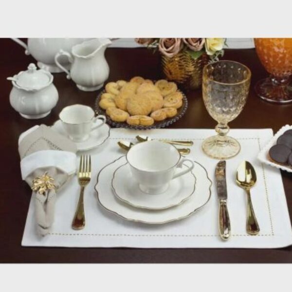 – Cor: Branco com borda Dourada