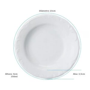 Conjunto de Pratos Fundos Pomerode Branco 23cms de diametro e 6 peças