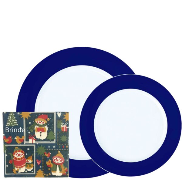 Jogo Pratos Rasos e Sobremesa Versa Azul Marinho 12un Porcelana Germer