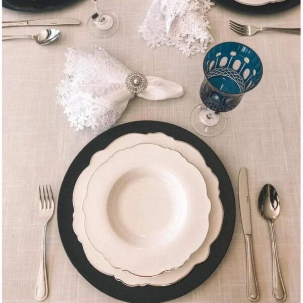 Os Pratos Rasos Maldivas possui o acabamento em branco é elegante e atemporal, perfeito para combinar com qualquer decoração de mesa. Ele adiciona um toque de sofisticação e classe a qualquer ocasião, desde jantares formais a refeições cotidianas. Além disso, o fio dourado que contorna a borda de cada prato adiciona um elemento luxuoso e refinado, elevando ainda mais a sua aparência.