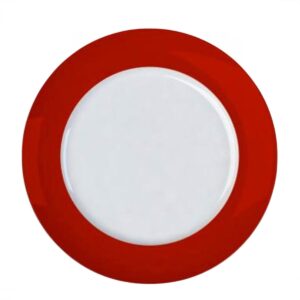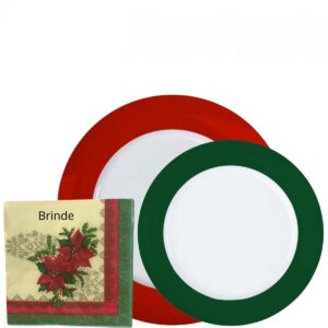 Composição: São 6un Pratos Rasos Verdes com 27,5cm de diametro e 6un Pratos para Sobremesa Vermelho com 20cm de diametro