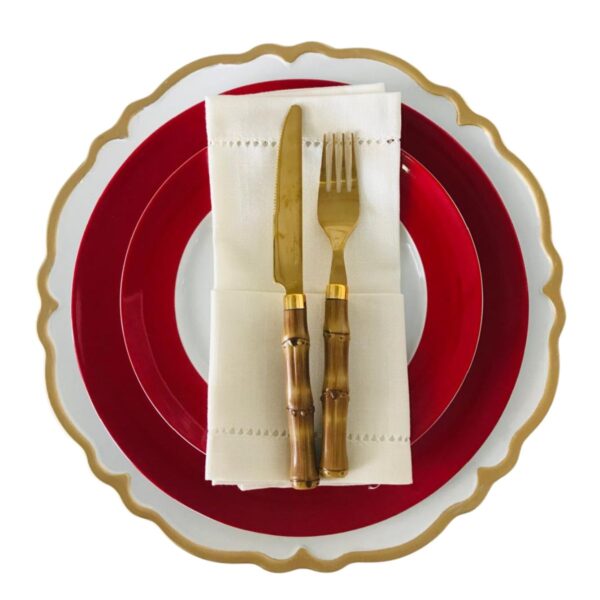Porcelana Fina Branca com as Bordas Vermelhas Belíssimo, Vem Trazer para o seu Dia a Dia e para o seu Natal a Elegância e Beleza que vocês merecem.