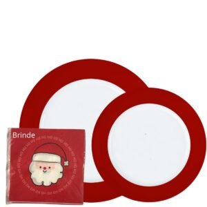 Pratos Rasos e Sobremesa Versa Vermelho Natal 12un Porcelana Germer