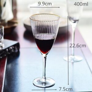 A beleza dessas taças é incomparável. Com um design elegante e sofisticado, as taças apresentam linhas limpas e curvas suaves que se harmonizam perfeitamente. A borda dourada ao redor de cada taça adiciona um toque luxuoso, refletindo a luz e criando um visual deslumbrante.