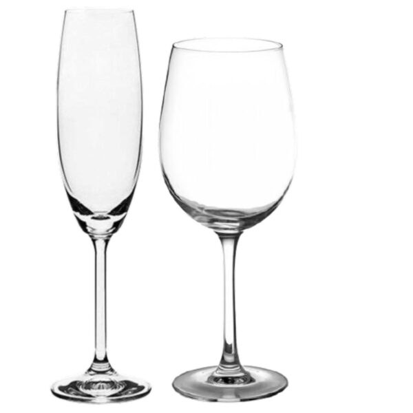 Composição; 6un de Taças para Champanhe de 220ml cada e 6un de Taças para Agua de 580ml cada, sendo que esta ultimo pode servir para Vinho Tinto. Taças de Cristal lindissimas.