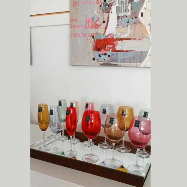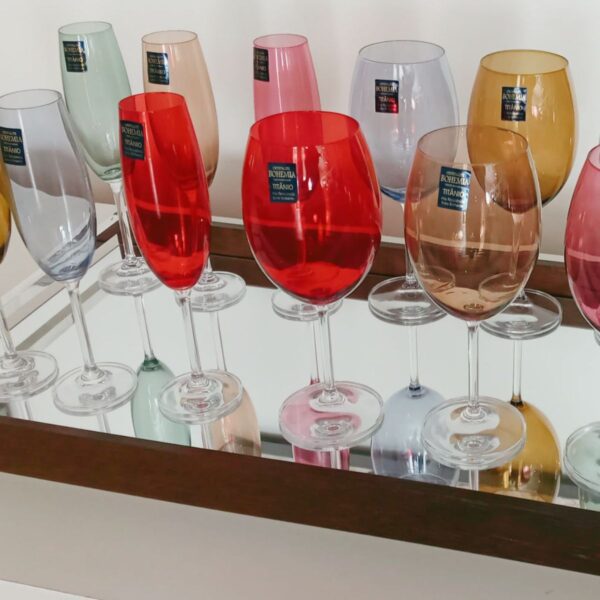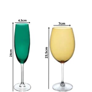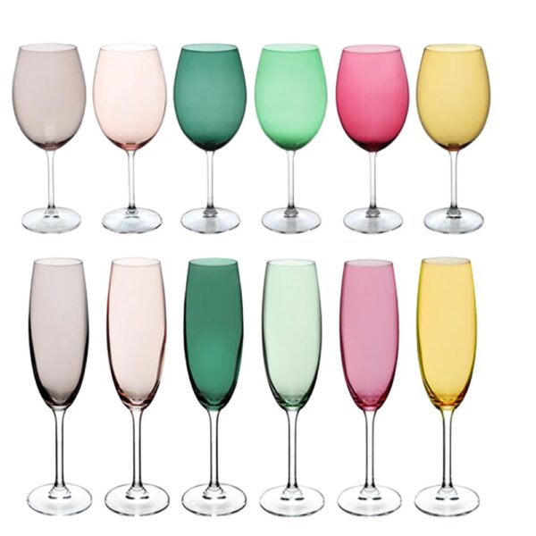 Jogo Taças Cristal Champanhe e Agua Coloridas 12un Bohemia