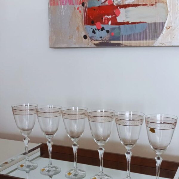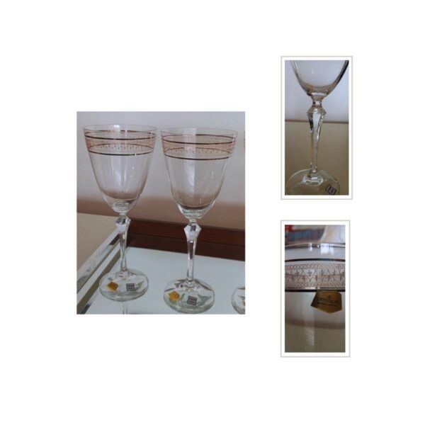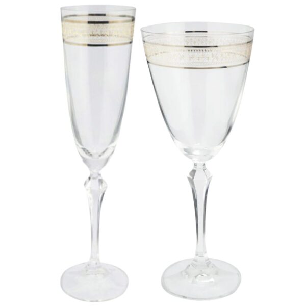 Jogo Taças Cristal Champanhe e Agua Frizo Dourada e Decorada 12un Bohemia
