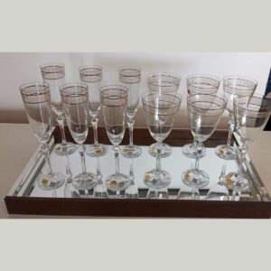 Desperte a sofisticação em suas celebrações com o Jogo de Taças Bohemia, uma fusão perfeita de luxo e elegância. Este conjunto exclusivo apresenta doze taças deslumbrantes, incluindo seis taças de champanhe com capacidade de 220ml e seis taças de água com capacidade de 580ml, cada uma adornada com um friso dourado e delicadas decorações. Moldadas em cristal de alta qualidade pela renomada marca Bohemia, essas taças são verdadeiras joias para sua mesa, adicionando um toque de glamour e requinte a cada brinde e gole. O friso dourado emoldura cada taça com um brilho sutil, enquanto as decorações intricadas acrescentam um charme distinto. Seja para uma festa requintada ou uma refeição íntima, este conjunto é a escolha definitiva para elevar qualquer ocasião especial. Com formas ergonômicas que proporcionam conforto ao segurar e bases sólidas para estabilidade, cada taça é uma expressão de bom gosto e luxo, tornando seus momentos de celebração verdadeiramente inesquecíveis.