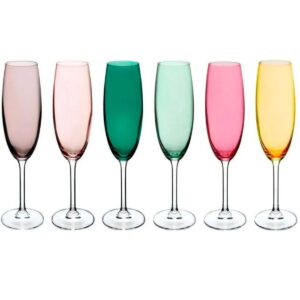 Jogo Taças Cristal Coloridas para Champanhe 220ml 6un Bohemia