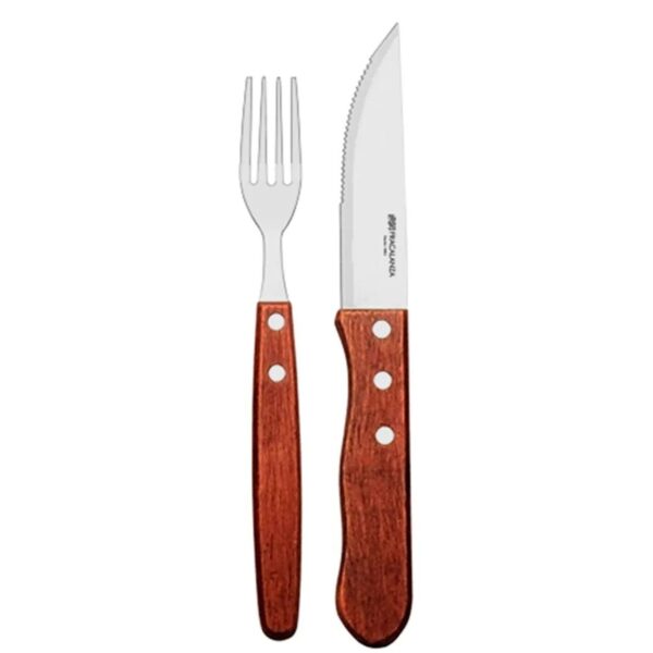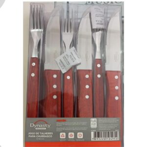 Jogo Talheres para Churrasco em Aço Inox Cabo Madeira 12pç Dynasty