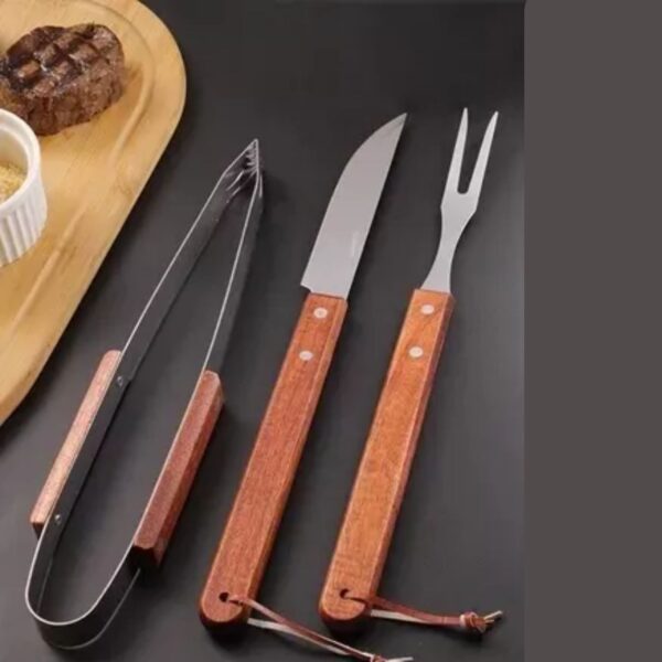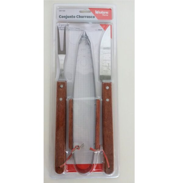 Jogo Utensílios para Churrasco 3pç Cabo Madeira Western Home