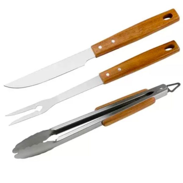 Além disso o conjunto oferece um garfo para espetar e manipular carnes, um pegador para servir, uma faca grande com lâmina afiada e durável, perfeita para cortar carnes com precisão e uma Tábua de Corte.