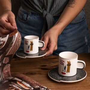 Elevando o charme das suas pausas para o chá, o Jogo de Xícaras Faces da L’Hermitage oferece um toque de elegância e sofisticação. Fabricado em porcelana New Bone de alta qualidade, cada xícara vem acompanhada de um pires, ambos adornados com uma borda dourada que enriquece a sua mesa com um detalhe requintado.