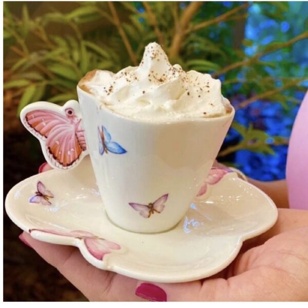 Jogo Xícaras para Cafe Borboletas 100ml 6un Porcelana Wolff