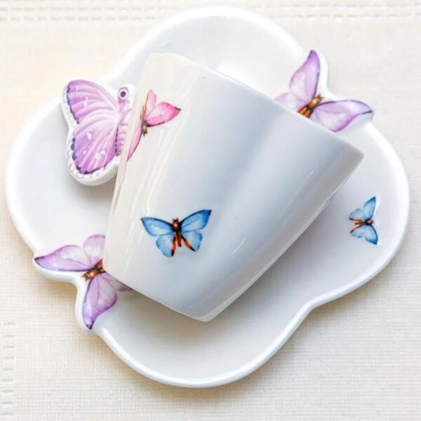 Xícara para chá de porcelana com borboletas da Wolff, é uma peça única que irá complementar sua mesa posta com charme e sofisticação.