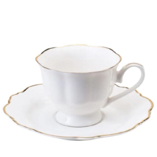 Xícara chá porcelana c/pires Maldivas branco c/fio dourado 180ml