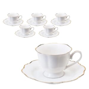 Jogo Xícaras para Chá Maldivas Branca Filete Dourado 180ml 6un Porcelana Wolff