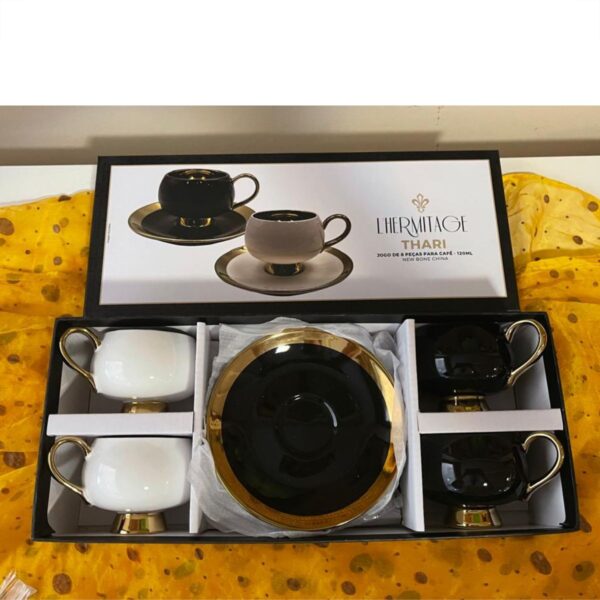 – Cor: 2un Branca com borda dourada e 2un Pretas com Borda Dourada.