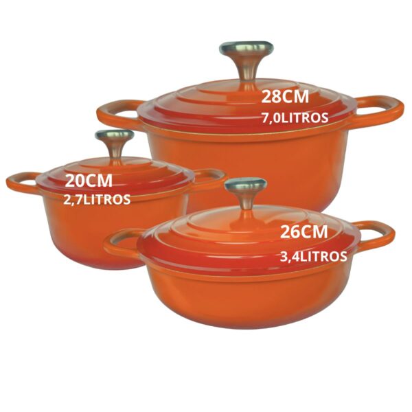 Panelas Caçarolas Cerâmica 3 peças 4mm Indução Laranja Chef Florença