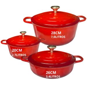 Panelas Caçarolas Cerâmica 3 peças 4mm Indução Vermelho Chef Florença