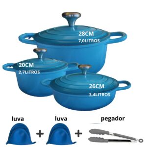 Panelas Caçarolas Cerâmica 3peças 4mm Indução Azul Chef Florença