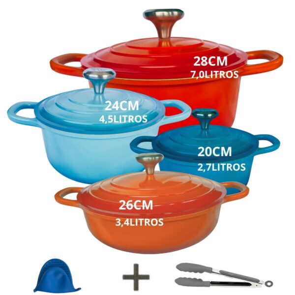 Estas Panelas são diferentes de tudo que voce ja viu, indispensáveis,não solta residuos nada gruda mesmo sem oleo ,é livre de PFOA, mantem o alimento quente por muito tempo e são leves de manusear podendo ser levadas do fogão à mesa de servir.