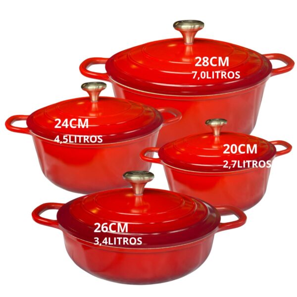 Panelas Caçarolas Cerâmica 4peças 4mm Indução Vermelho Chef Florença