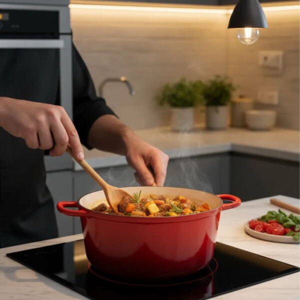 - Suporta altas temperaturas, pode ir do fogão convencional e de indução e direto à mesa.Pode ir ao Forno.