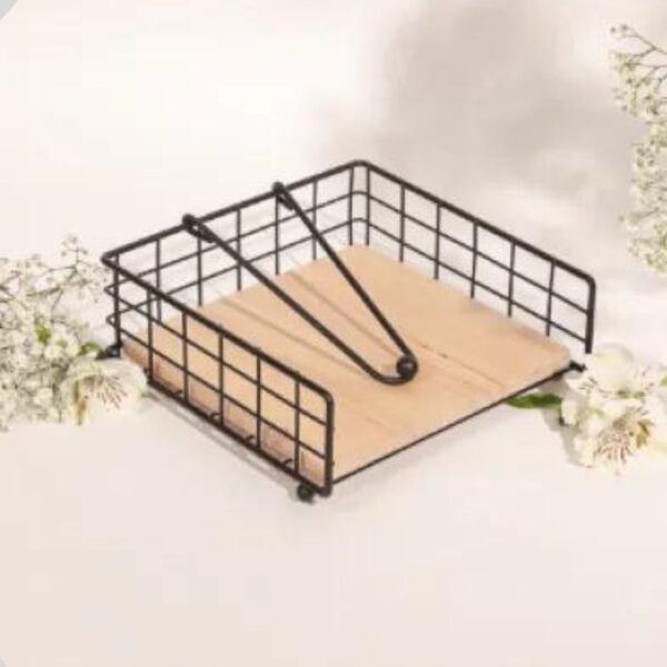 Com um design sofisticado, este porta guardanapo é projetado para acomodar guardanapos de forma organizada e visualmente agradável. A base de madeira confere um toque de rusticidade e calor à peça, enquanto o suporte de metal adiciona um toque de sofisticação clássica.