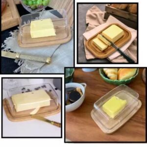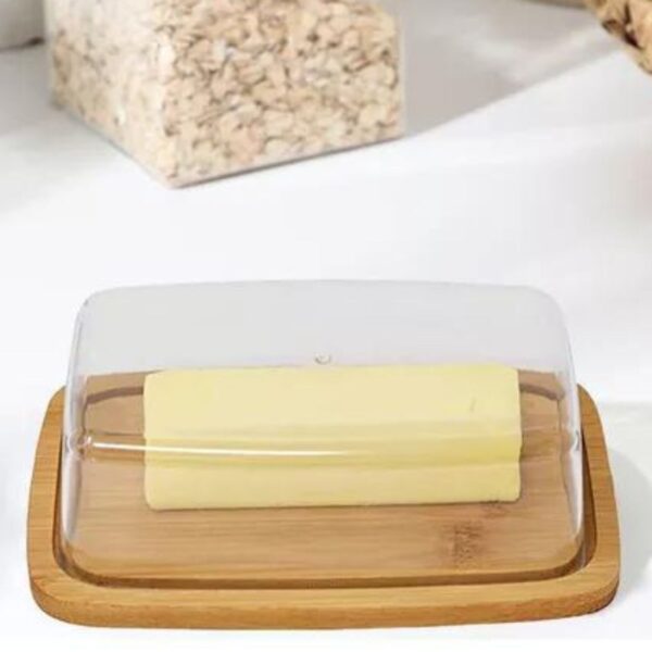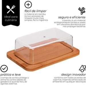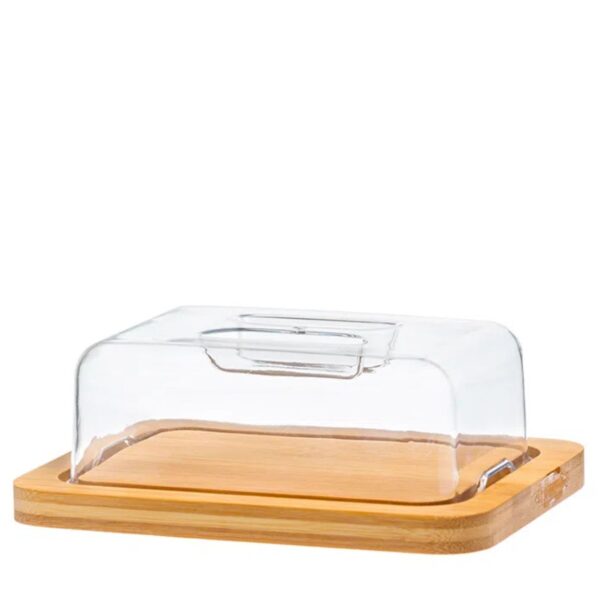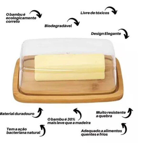 Porta Manteiga de Bambu Tampa de Acrílico Base Bambu Material Ecológicamente Correto